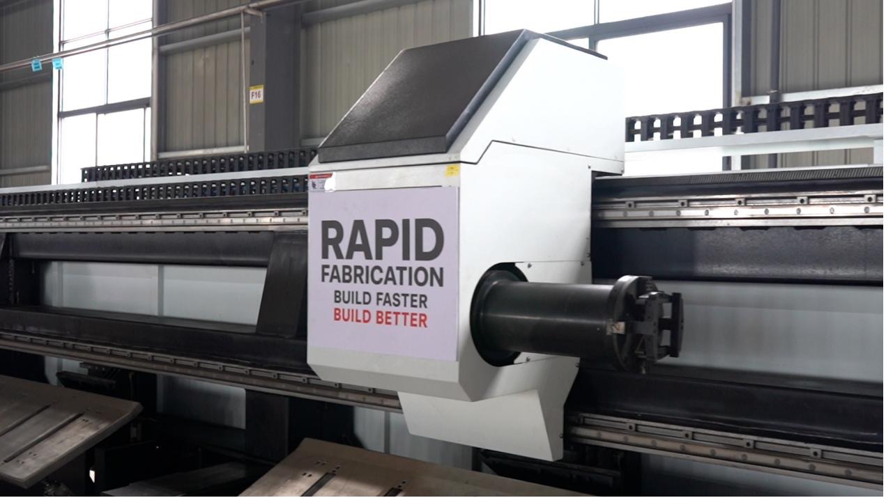 This machine is designed for automated processing of 12-metre lengths in a wide range of hot-rolled steel sections. It supports full-face cutting, etching, and marking using an integrated 12,000-watt laser.