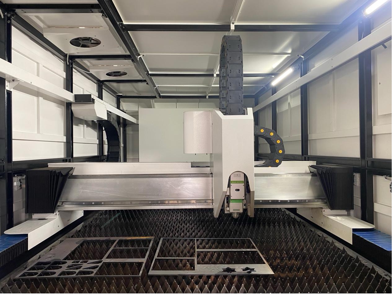This unit features two 1500 mm x 3000 mm cutting tables — enabling seamless plate changeover during operation. While one table is active, the second is unloaded and reloaded, providing continuous processing without downtime.